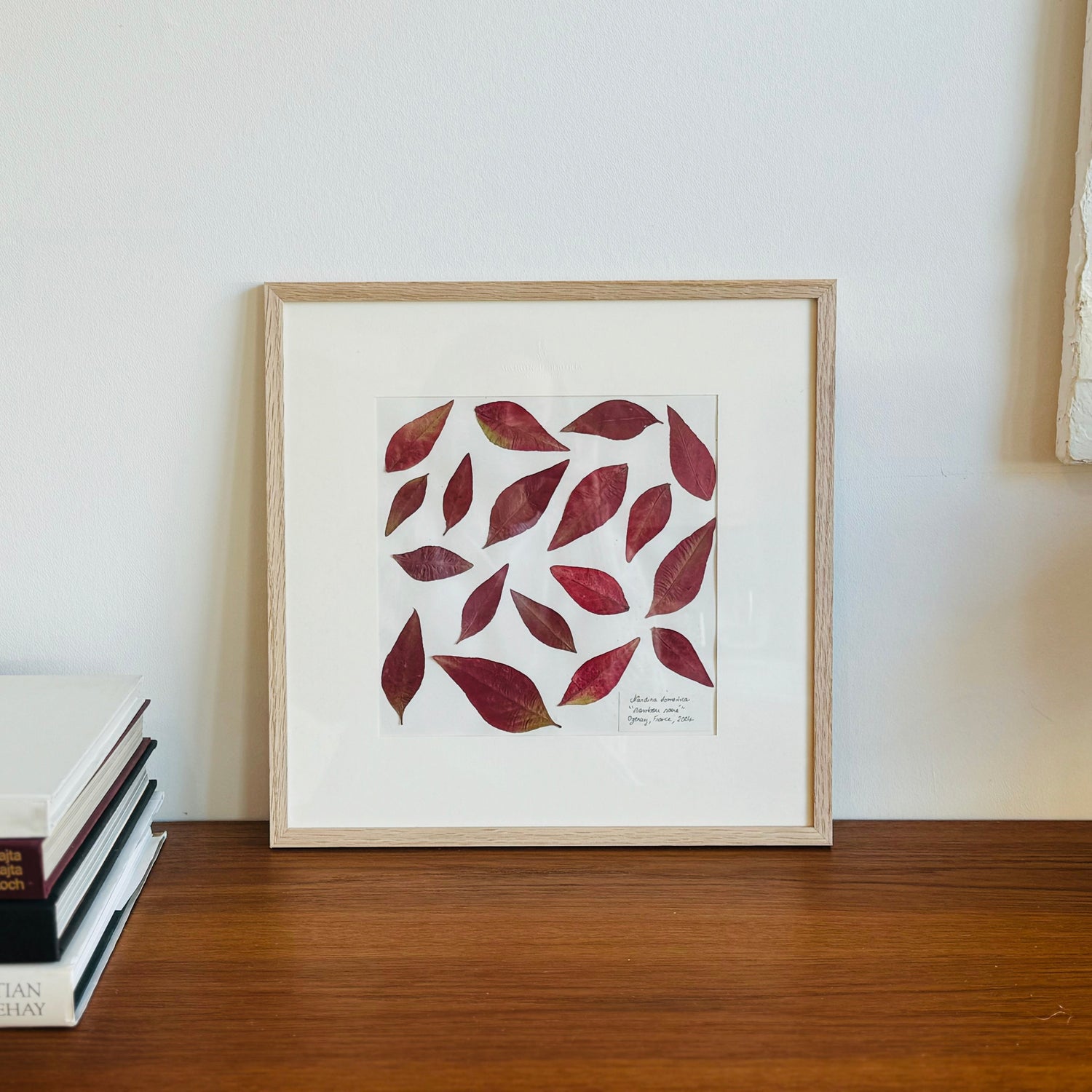Herbier Encadré, carré (bois), Nandina Domestica, France